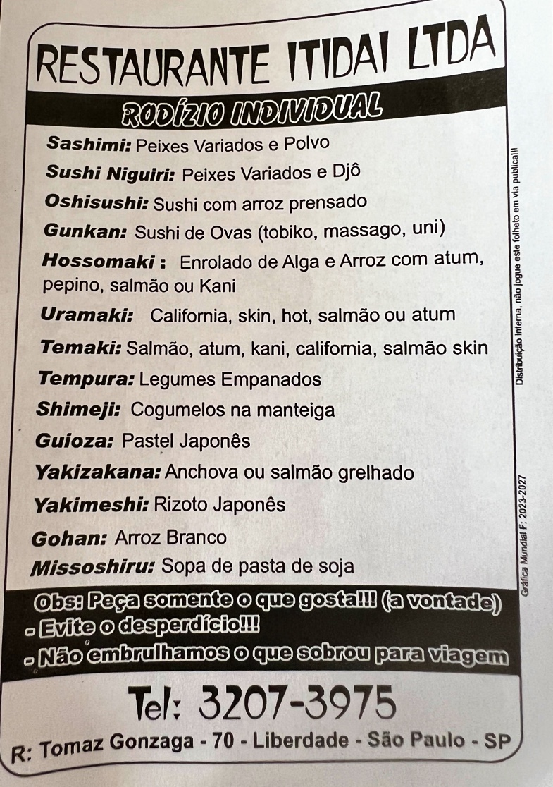 Welcome to Restaurante Itidai, a hidden gem nestled in the vibrant heart of Liberdade, São Paulo. This traditional Japanese eatery is renowned for its authentic dishes, making it a go-to spot for sushi lovers and culinary adventurers alike.